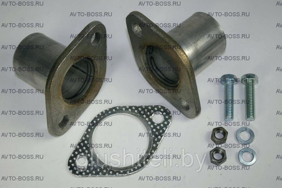 Фланцы для выхлопной системы, соединительные на два болта, с трубами и прокладкой, диаметр 55.